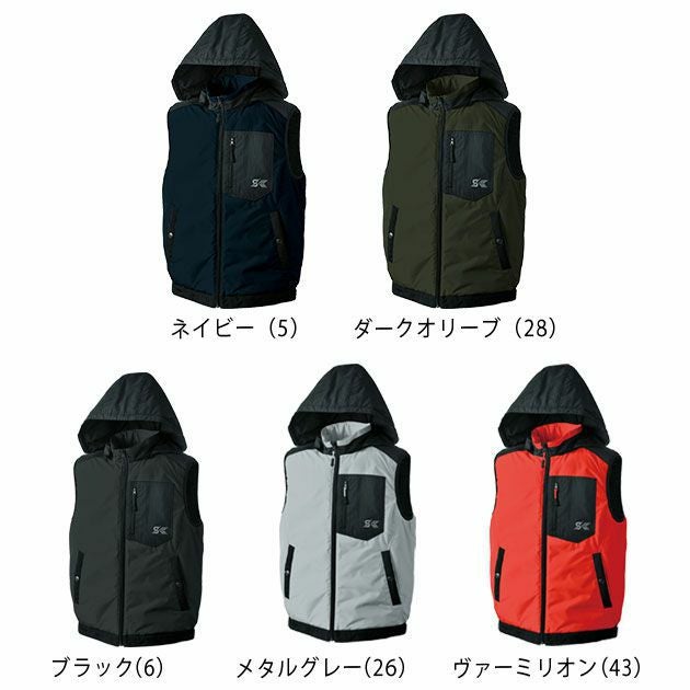 5. S~4L シンメン 作業着 電熱ウェア S-HEAT ハイブリッドウォームフードベスト 03061