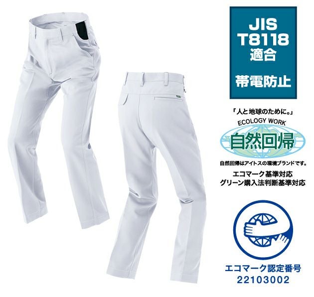 植物由来の合成繊維を使用したエコマーク対応商品 3S~5L|AITOZ アイトス 春夏作業服 作業着 ワークパンツ(ノータック)(男女兼用) AZ-1920