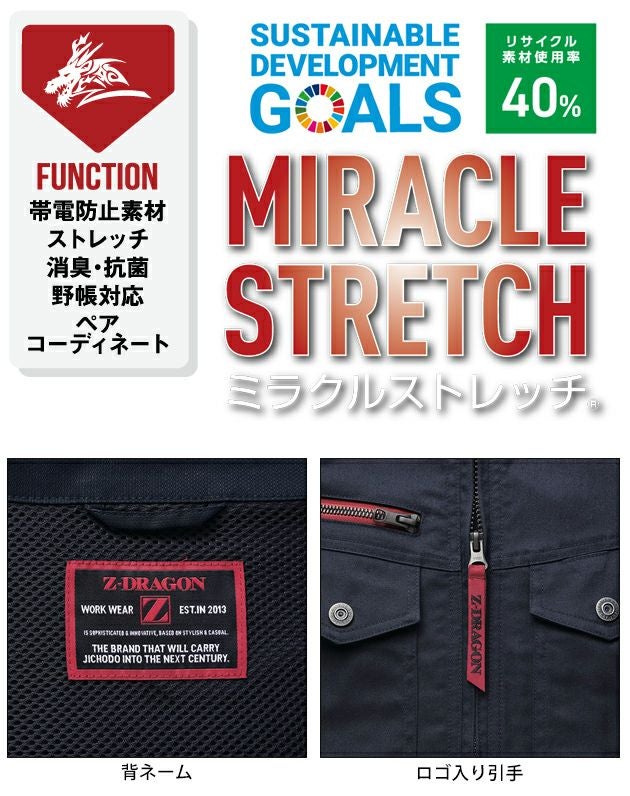 ストレッチによる快適な着用感とレッドファスナーのアクセント 4L 自重堂 春夏作業服 作業着 Z-DRAGON エコストレッチ長袖ジャンパー 77400