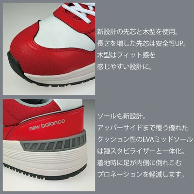 | 【特徴】 | ニューバランス安全靴の新たなソールモデル登場! 履き心地もおしゃれも全部実現できるのがニューバランス安全靴! ◆柔軟性と屈曲性抜群! 甲部分には牛革を部分的に使用! しゃがむ動作などの屈曲時に柔軟性と耐久性を発揮します! つま先にはTPU製トゥガードを採用! 傷みやすいつま先を保護します! ◆フィット感アップ!新設計モデル! 靴のデザインを見直し、フィット感アップ! 先芯は従来よりも長くすることで安全性を高めました。 ◆ソールも新設計!内側への倒れこみを軽減! サイドからかかと部分まで覆う優れたEVAミッドソールを新たに搭載! さらに踵スタビライザをミッドソールと一体化させることで着地時に足が内側に倒れこむプロネーションを防ぎます! ◆インソールは足裏のアーチを支え、抜群のクッション性を発揮するスプリングテックインソールを採用!長時間履いても疲れにくい! ※ブラック(SL-222)のみ22.5~のサイズ展開です。 |