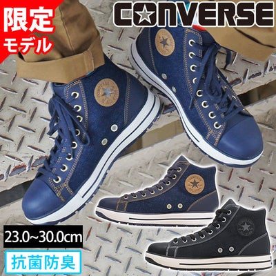 | 【特徴】 | 2026年限定モデルはデニムハイカットが登場! 今しか手に入れることができないおしゃれ安全靴です! コンバース安全靴のサイドジップモデルをデニムアレンジ! アンクルパッチやハトメパーツ、ステッチなどもデニムで見られるカラーを取り入れたこだわりのデザイン。 ◆脱ぎ履きしやすいサイドファスナー ◆軽くて丈夫な人工皮革「クラリーノ」を採用! ◆クッション性のあるミッドソールと中敷きで疲れにくい! ◆つま先を少し高めに上げる設計をしているのでつまづきにくい! ◆靴の中は抗菌防臭加工を施しているのでニオイを軽減! ◆ソールは耐滑性を備え、動きやすさと安全性を確保 ◆ベロ部分は作業時のムレを逃がすメッシュ素材を採用!さらに網目状の通気孔を設け、ムレを軽減! ◆かかと部分に反射材を採用!オールスターらしいデザインを生かしながら視認性も確保 |