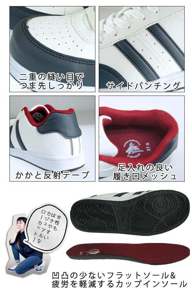 | 特徴 | サイズ展開は22.0cmから! 男女兼用で着用シーンを選ばないセーフティシューズ ■ベロ部分にはブロンドロゴプリント ■かかと部分には反射パイピング使用 |