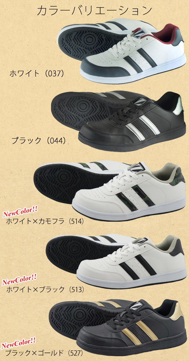 | カラー | ブラック(044)、ホワイト(037)、ホワイト×カモフラ(514)、ホワイト×ブラック(513)、ブラック×ゴールド(527) |