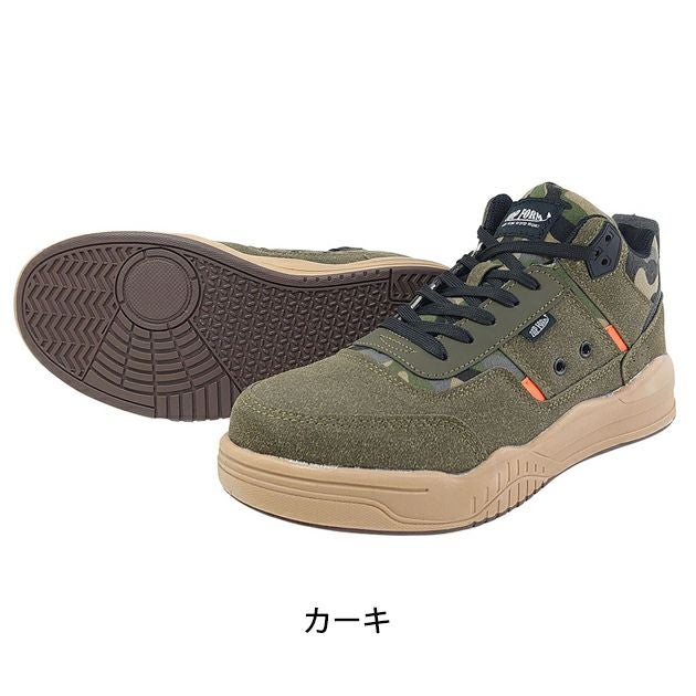 | 【特徴】 | 心地よいフィット感! おしゃれで履き心地抜群なスニーカー安全靴! ◆足をしっかりホールド! 足首まで包み込んでしっかり固定する履き口。 厚めのクッション採用で快適! ◆かかと部分に反射材を配置 ◆適度な弾力で長時間履いても疲れにくいクッションソール ◆地面をしっかりグリップするラバーソール ◆迷彩柄とスエード調のデザインでおしゃれ ◆かかと部分にクッションが付いた制菌・消臭インソール付きでニオイも軽減! |