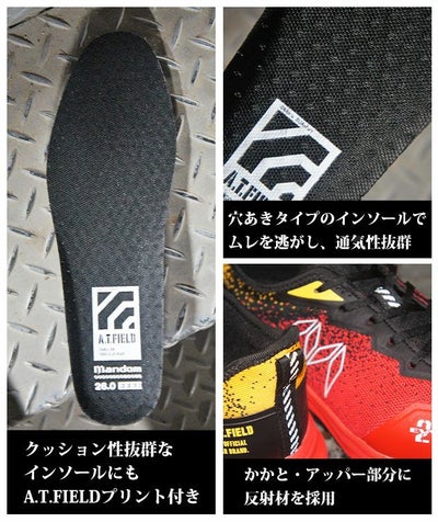 | 【特徴】 | このエヴァに乗れ。エヴァンゲリヲンコラボ安全靴、発進! TVシリーズ放映開始から30周年を迎えたエヴァンゲリオン。 エヴァの世界観を取り入れたワークブランド「A.T.FIELD」とのコラボ安全靴が登場! しなやかなニットアッパーに最新のクッション素材を採用することでふんわり快適な履き心地を実現! 軽量樹脂先芯を採用することで軽さも追及! 疲れにくい安全靴で仕事へ発進! |