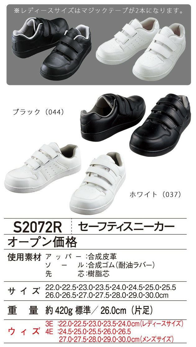 マジックタイプ!豊富なサイズ展開が魅力の男女ペア企画シューズ 自重堂 安全靴 セーフティースニーカー S2072R