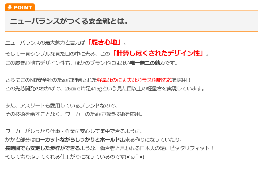 | 特徴 | ついに登場! あの「ニューバランス」の安全靴が出た!!! ◆1906年、ボストンで生まれた大人気スニーカーブランド「NewBalance」 抜群の履き心地の良さとおしゃれな見た目で全世界で大人気のニューバランスからついに安全靴が登場! ニューバランスの名前の由来は「履いた人に新しいバランス感覚をもたらす」というコンセプトから来ています。 足の解剖学・整形外科の知識を生かして作られたシューズはランナーから絶大な人気を誇っています。 カジュアルなルックスは今も多くの人に愛されています。 ◆日本人の足に合わせた設計を! この安全靴の為に開発したガラス繊維配合の樹脂先芯を採用。 さらに作業中もしっかりかかとをホールドできるかかとカウンターや安定した歩行を支えるスタビライザーを搭載! ニューバランスのあの快適な履き心地をそのままに日本人の足に合わせた1足を作り上げました! ◆耐油・耐滑ラバーソール ◆3M再帰反射素材 ◆屈曲性抜群なソフトベンディング ◆レッド×レッド×ホワイトとグレー×グレー×ホワイト、ネイビーは22.5cmからのユニセックス仕様 |