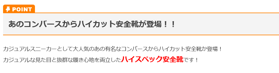 特徴 あのコンバースからハイカット安全靴が登場!!