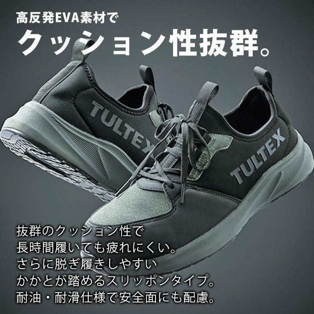| 【特徴】 | かかとが踏める! 脱ぎ履きが多い現場でも快適に使えるおしゃれ安全靴! ◆345gの軽量設計! ◆クッション性の高いEVAミッドソールで長時間履いても疲れにくい! ◆アッパー部分は柔らかくて型崩れしにくいクロロプレン素材を採用 ◆運送・物流・組み立て加工などの軽作業にピッタリ! ◆耐油・耐滑ソール |