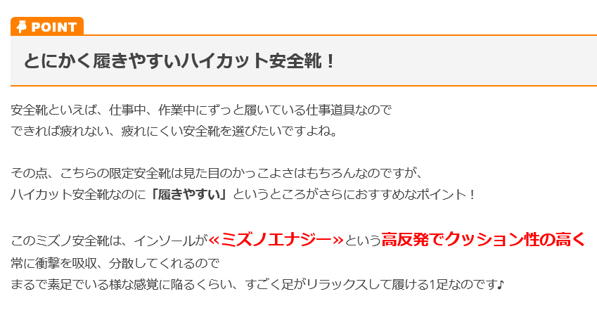 | 【特徴】 | 2024年限定モデルはトリコロールカラー! 素足感覚で弾むハイカット! 高反発と柔らかさが特徴のミズノエナジーを採用! 「クッション性」と「素足感覚」を両立させた抜群に疲れにくいハイカット安全靴登場! 今しか手に入らない限定ハイカット! ◆ミズノ史上最高の高反発ソール素材「ミズノエナジー」! 総合スポーツメーカー「ミズノ」だからこそできた「反発性」の研究成果を安全靴に応用! 柔らかさによって溜めた接地時のエネルギーを少ないロスで反発させることで疲れにくさを実現しました。 ◆アッパーにはメッシュを採用しムレにくい! ◆すり減りやすい履き口には人工皮革を使用 ◆前足部分はソールを薄く設計し素足感覚を実現 ◆足首をしっかりサポートするベルト ◆傷みやすいつま先は人工皮革で補強 ◆夜間でも安全な再帰反射材を採用 ◆油による劣化しにくい耐油ラバーソール ◆靴底の突起部分がスリップサインと同じ高さまですり減ったら買い替えの目安 ◆結んだ紐を留めるゴムバンド搭載 |