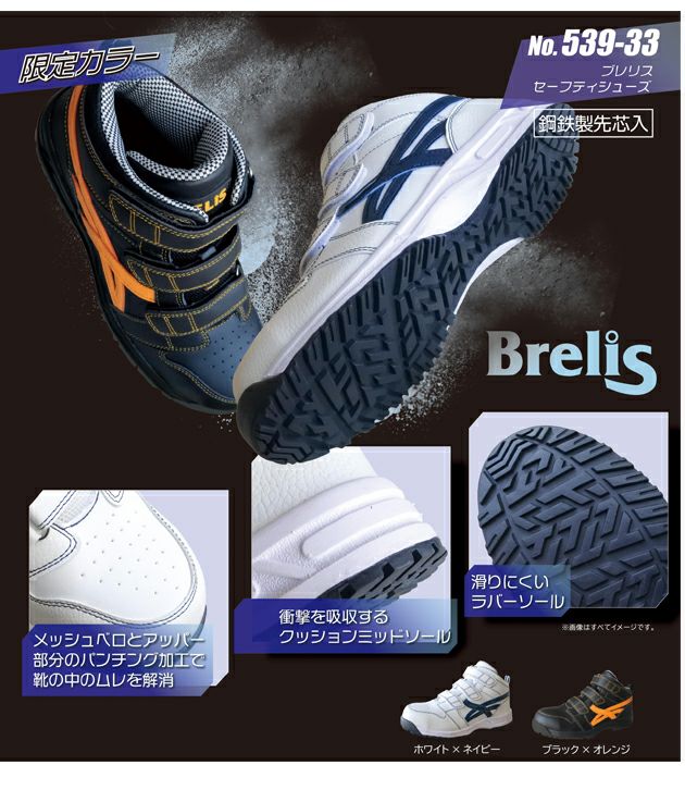シンプルでおしゃれ!衝撃吸収ソールで長時間履いても疲れにくい 富士手袋工業 安全靴 ブレリス セーフティシューズ 539-33