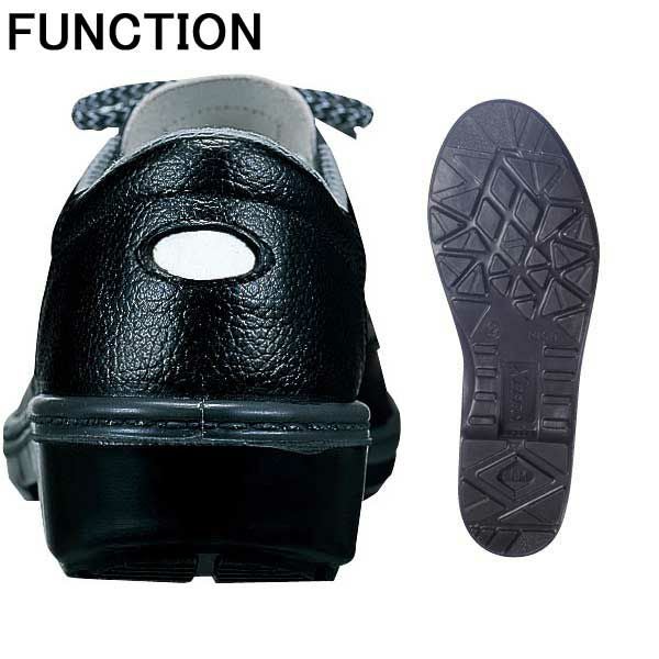 | 特徴 | 1、樹脂先芯 2、衝撃吸収 3、かかと 4、反射材を使用 5、JIS規格合格商品 |