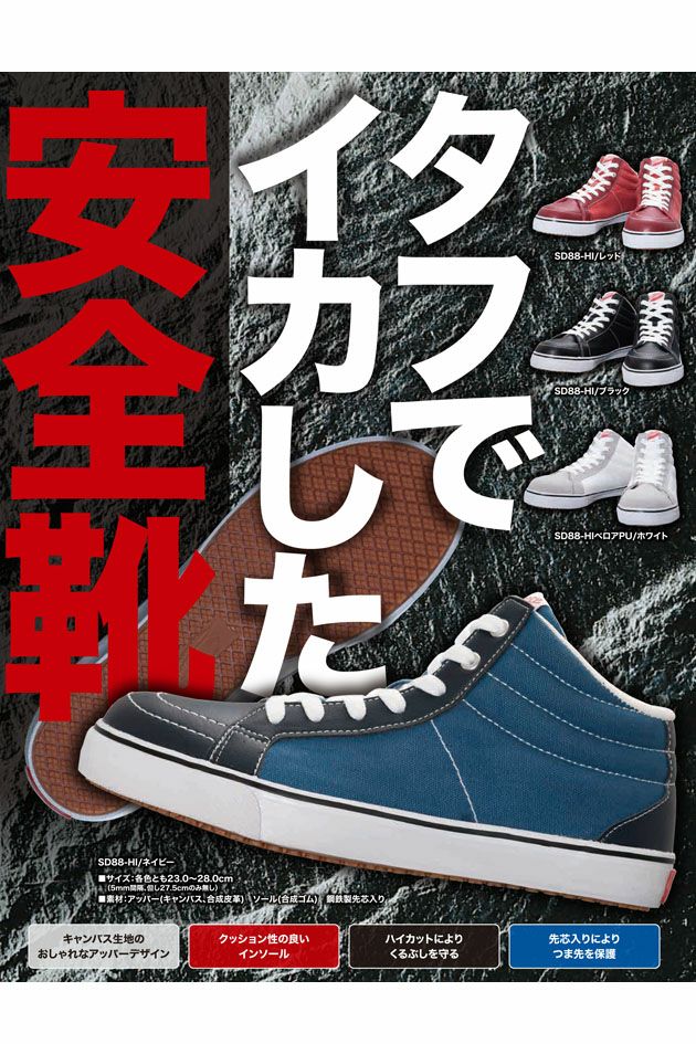 タフでイカした安全靴。プライベートでも履けるおしゃれ安全靴! サンダンス sundance 安全靴 ハイカットセーフティスニーカー SD88-HI