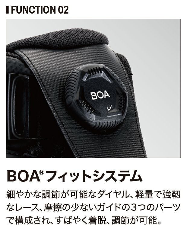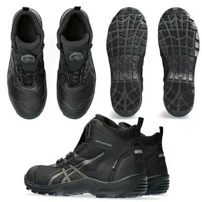| 【特徴】 | 人気のBOAシリーズに、防水性と透湿性に優れた「ゴアテックスファブリクス」を採用した高機能モデル。 ◆すばやく細かなフィットを可能とするBOA(R)フィットシステム(L+1ダイヤル)を採用。 ◆靴底には、不整地でも路面をとらえやすく優れた耐滑性を発揮し、油で劣化しにくいCPグリップソールを採用。 ◆かかと部には、アシックスのスポーツシューズにも採用している衝撃緩衝材「GEL(ゲル)」を搭載し、クッション性を高めています。 ◆中敷きには、足のアーチを支えて、かかとの内側への倒れ込みを抑える立体形状のSRB中敷を採用しているため、足への負担を軽減します。 ◆先芯には、ガラス繊維強化樹脂を使用し軽量性を追求しました。 |
