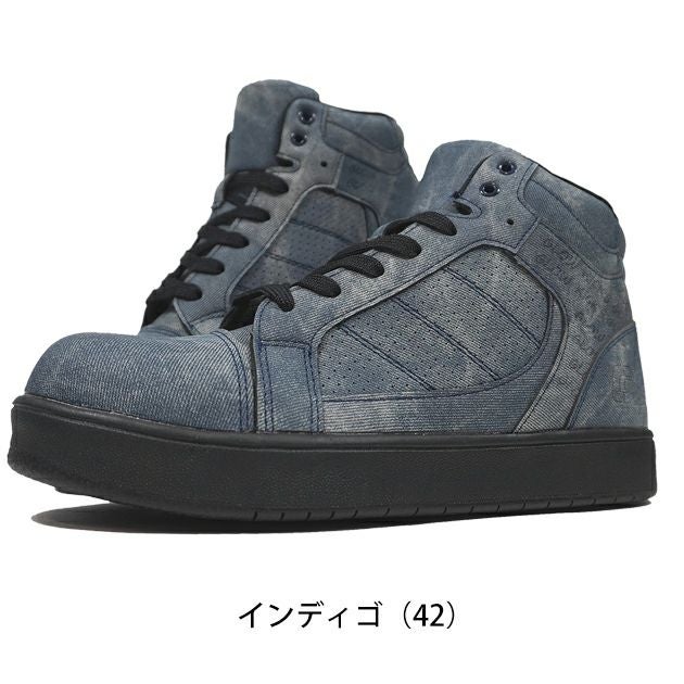 | 【特徴】 | デニム調のデザインがおしゃれ! 履き心地抜群なハイカット安全靴! ◆デニム生地調のデザインを合成皮革にプリントしたおしゃれ安全靴 ◆アッパーには撥水加工を施し汚れや雨を弾く(防水ではありません) ◆足元の不快感や疲れを軽減するハニカム状のインソール採用 ◆履き口は厚めにしているため、くるぶしまわりを保護 |