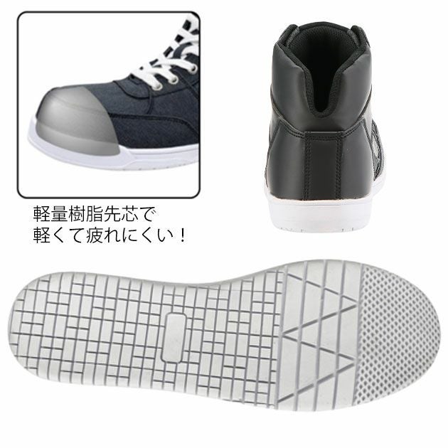 デニムをミックスさせたおしゃれハイカット安全靴!脱ぎ履き楽々 弘進ゴム 安全靴 ファントムストリート FST-2020MC