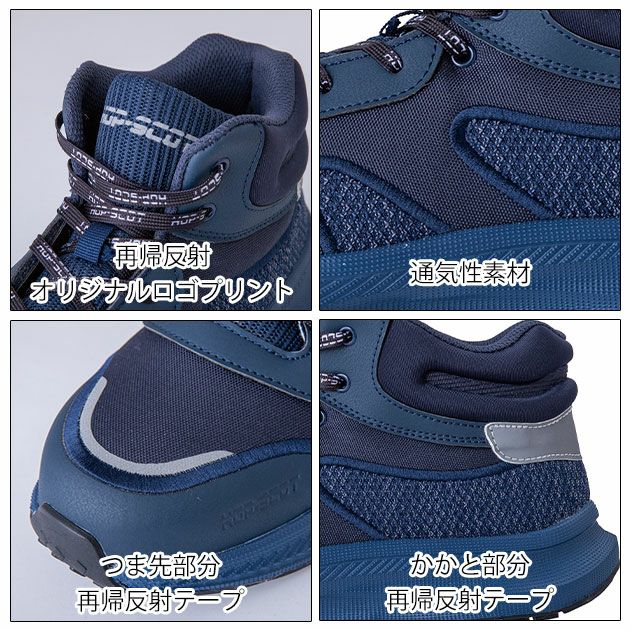 | 【特徴】 | コスパ最強安全靴! ハイカットでもお求めやすいお値段を実現! ◆長時間履いても清潔で快適な履き心地を実現! ◆過酷な作業環境にも対応する安心設計 ◆再帰反射オリジナルロゴプリントをつま先やかかと、ベロ部分に採用し視認性を確保 ◆通気性のある素材をアッパーの一部に採用 |
