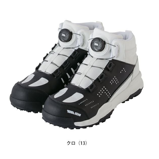 ダイヤル式でフィット感の調節が簡単。フックループテープ付き 寅壱 0288-965 安全靴 ダイヤル式ミッドカットスニーカー