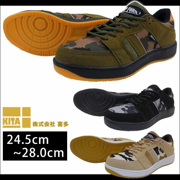 疲れにくい!衝撃吸収に優れたソール採用!おしゃれなカモフラ! 喜多 安全靴 プロスニーカー MG-5690