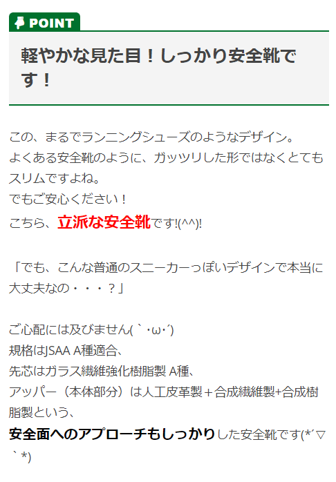 | 特徴 | とにかく通気性がすごい! アシックスからエアサイクルシステムを搭載したスニーカータイプの安全靴登場! ◆靴の中を空気が駆け巡る!「AIRCYCLE SYSTEM(エアーサイクルシステム)」 つま先部分と土踏まず部分に設けられた通気孔から空気を取り入れ、放出します! ソール部分に加えアッパーのメッシュでもさらに空気の循環をサポートします! ◆ランニングシューズにも採用されているクッション素材「fuzeGEL(フューズゲル)」を採用! スポーツシーンで採用されたソールだから、疲れにくい! ◆中敷きは足のアーチを支える疲れにくいSRB中敷き ◆ソールは油で劣化しにくい耐油性ラバー採用 |