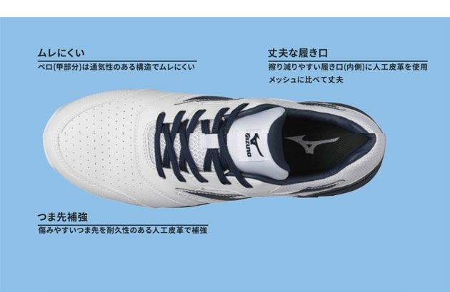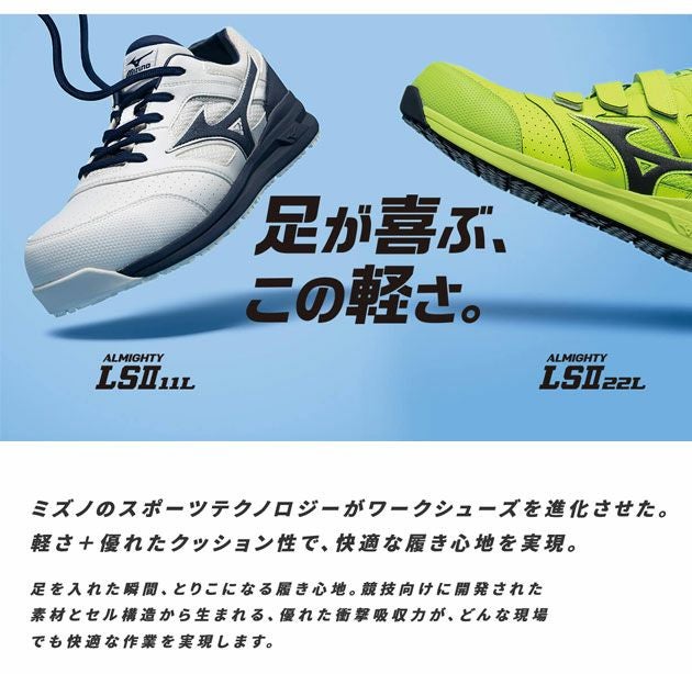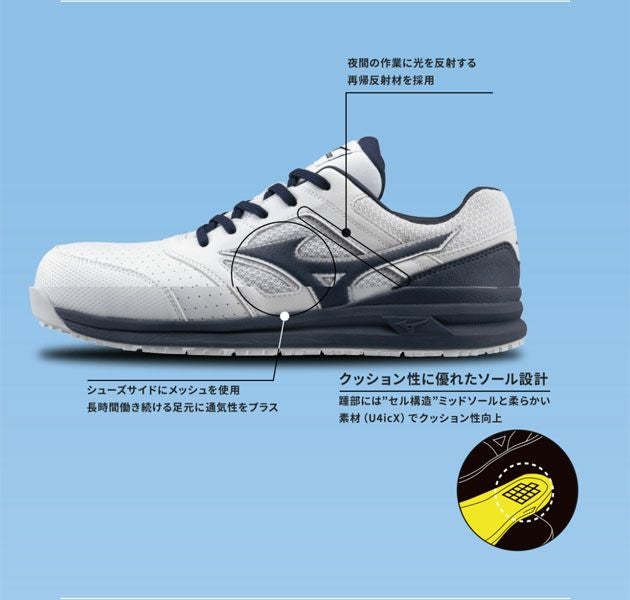 | 特徴 | スポーツテクノロジーを研究するミズノだからこそできた安全靴! 現場で働き続ける足元をしっかり支えます! ◆ランニングシューズにも採用されてい柔らかいミッドソールで疲れにくい! ◆履いた瞬間に感じる「軽さ」! ◆クッション性が高く耐油・耐滑性に優れたソールを採用! ◆すり減りやすい履き口の内側は人工皮革で補強! ◆つま先には硬質樹脂先芯を採用し、軽くて強い安全靴に仕上げました! ◆さらにつま先は耐久性のある人工皮革で補強! ◆夜間作業時に光を反射する再帰反射材をサイドに採用 ◆スリップサイン搭載で買い替え目安が分かる! ◆サイドにはメッシュを採用し通気性をプラス! ◆ベロ上部には結んだ靴ひもが収納でき、靴ひもが巻き込まれるのを防止します! ◆ご注意◆ この商品は色によってサイズ展開が異なります ・ホワイト×ネイビー、ブラック×ダークシルバー…22.0~28.0、29.0、30.0cm ・ブルー×オレンジ、レッド×イエロー…24.5cm~28.0、29.0cm |