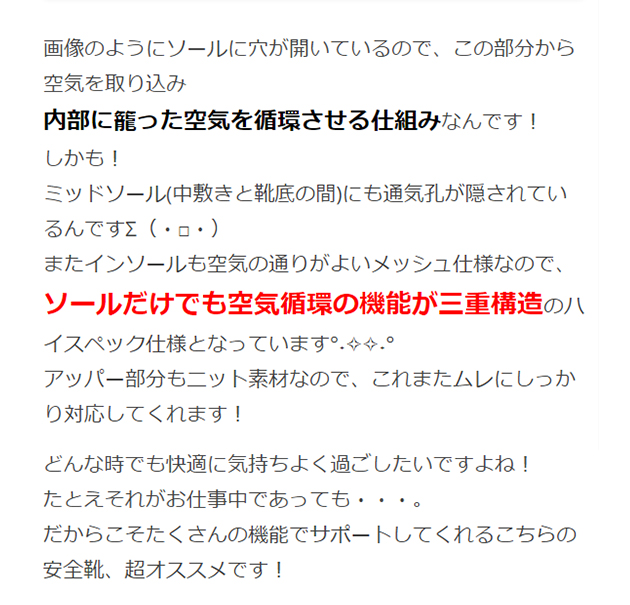 ◆空気循環ソールとニットアッパーによる抜群の通気性を実現!不快なムレを解消!