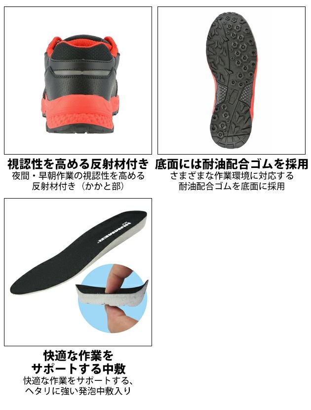 中敷きにへたりに強い発泡樹脂素材を使用し快適な作業をサポート HUMMER ハマー 安全靴 ワークシューズローカット HM-S1