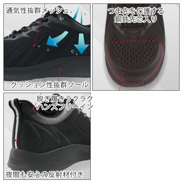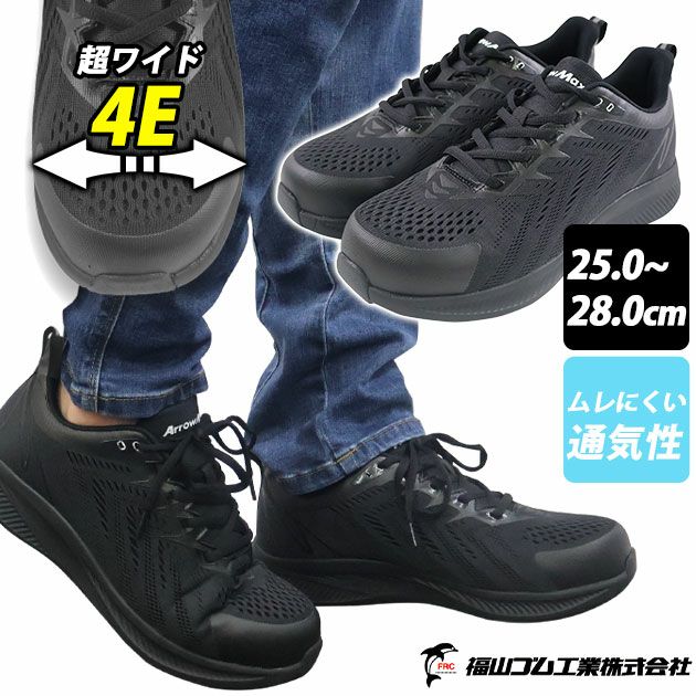 幅広4Eなのにスマートな見た目!通気性も抜群なスニーカー安全靴 福山ゴム 安全靴 アローマックス #118