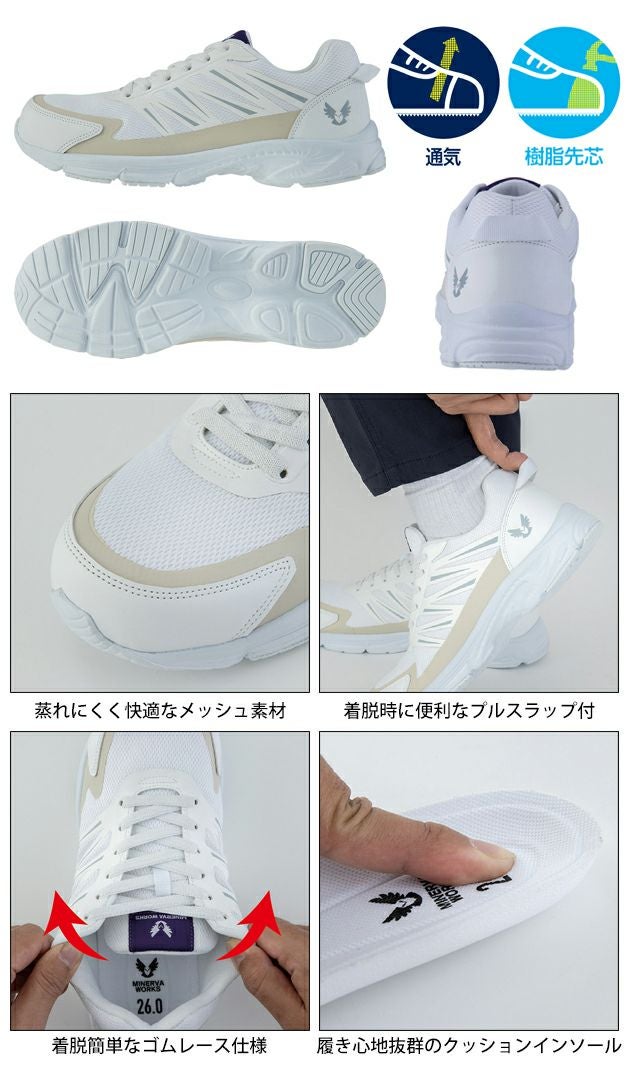 | 【特徴】 | 「MINERVA WORKS(ミネルヴァワークス)」にフライワークシリーズ登場。 片足わずか約240g(26.0cm)と驚きの軽量感。 1.0はゴムレースで紐を結ぶ手間いらずの着脱簡単仕様。 クッション性抜群のインソールで履き心地とデザインにもこだわった1足。 ・ゴムレース仕様 ・クッションインソール ・プルストラップ付 ・メッシュ素材 |