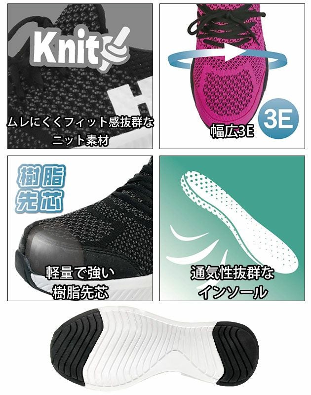 | 【特徴】 | SUVブランド「HUMMER」のニット安全靴! 通気性抜群!ムレにくくて軽い! かかと部分のハマーロゴのインパクト抜群! ◆軽量を実現!軽くて強い樹脂先芯! ◆フィット感と通気性を両立するニット生地 ◆長時間履いても疲れにくいクッション性抜群なソール! ◆インソールも通気性抜群な穴あきタイプを採用 |