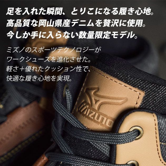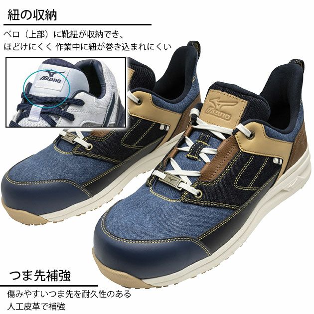 | 【特徴】 | 足を入れた瞬間、とりこになる履き心地のワークシューズに。 高品質な岡山県産デニムを贅沢に使用した数量限定モデル。 ミズノのスポーツテクノロジーがワークシューズを進化させた。 軽さ+優れたクッション性で、快適な履き心地を実現。 国産デニム発祥の地「岡山」のデニムをふんだんに使用した高級感あふれるおしゃれ安全靴! 二度と手に入らない限定モデルです! ◆ランニングシューズにも採用されてい柔らかいミッドソールで疲れにくい! ◆クッション性が高く耐油・耐滑性に優れたソールを採用! ◆すり減りやすい履き口の内側は人工皮革で補強! ◆つま先には硬質樹脂先芯を採用し、軽くて強い安全靴に仕上げました! ◆さらにつま先は耐久性のある人工皮革で補強! ◆夜間作業時に光を反射する再帰反射材をサイドに採用 ◆スリップサイン搭載で買い替え目安が分かる! ◆サイドにはメッシュを採用し通気性をプラス! ◆ベロ上部には結んだ靴ひもが収納でき、靴ひもが巻き込まれるのを防止します! |