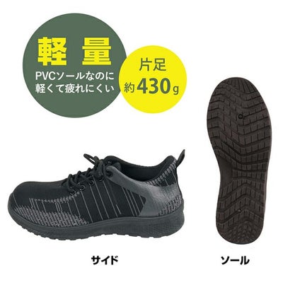 ニット素材で蒸れにくくPVCソールなのに軽くて疲れにくい カジメイク 4002 安全靴 GILIO セイバーセーフティ