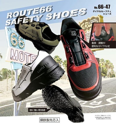 着脱・調整が便利なダイヤル式。油に強い耐油底採用 ルート66 ROUTE66 66-47 安全靴 ダイヤルセーフティーシューズ