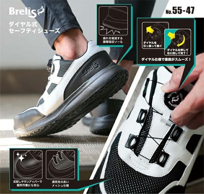 ダイヤル仕様で着脱がスムーズ!通気性の良いメッシュ仕様 富士手袋工業 55-47 安全靴 ブレリス ダイヤル式セーフティシューズ