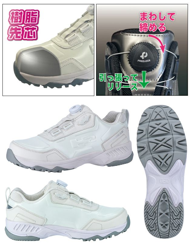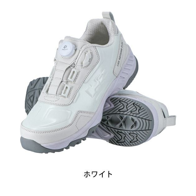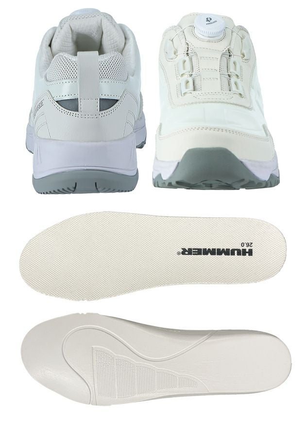 | 【特徴】 | FREELOCKダイヤル式で、脱ぎ履き・フィット感がカンタン調節 SUVブランドの「HUMMER」をイメージした作業靴 ◆インソールはヘタリに強く、長く履いてもクッション性が持続します。 ◆カラー展開はHUMMER H2から人気の高い車体カラーをモチーフにした2色。 高級感ある艶の「ホワイト」と、見る角度によって色が変わるマジョーラ仕様の「P(ピューター)メタリック」。 ◆カカト部分に反射材付きで夜間・早朝の暗い場所の作業で視認性を高めています。 ・軽量の樹脂製先芯を使用 ・FREELOCKダイヤル式で、脱ぎ履き・フィット感の調節が容易にできる ・ヘタリに強く、クッション性が持続しやすい「発泡樹脂中敷」入り ・ソール構成:EVAミッド+ラバーソール ・夜間・早朝作業の視認性を高める反射材付き(踵部) ・3E相当ラストタイプ ・中国製 |