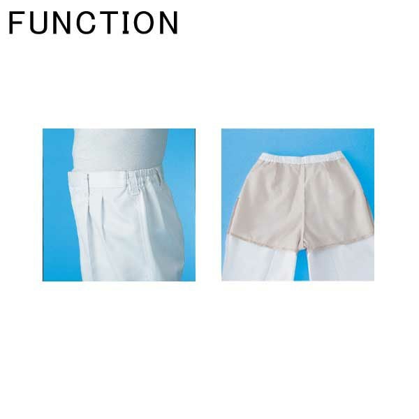 | 特徴 | 1、日本製生地 2、裏地二重構造 3、脇ゴム 4、抗菌防臭加工 5、帯電防止素材 |