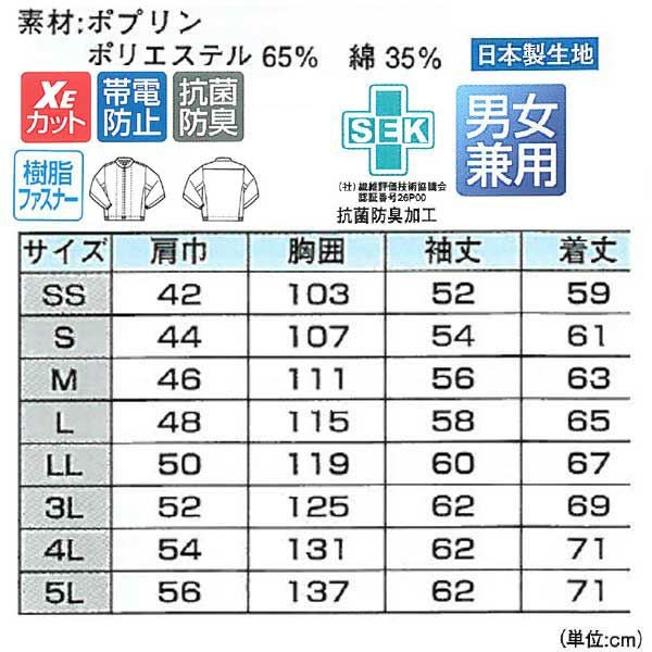 | 商品名 | 【ジーベック】【衛生用品】長袖ファスナージャンパー(立ち衿) 25200 |