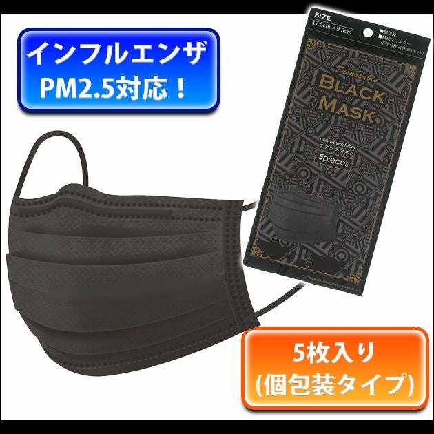 イエテン マスク ブラックマスクかぜ・花粉用 5枚入り