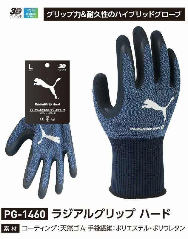 ついにPUMAから作業用手袋が登場!グリップ力と耐久性バツグン! PUMA プーマ 手袋 ラジアルグリップハード(5双セット) PG-1460