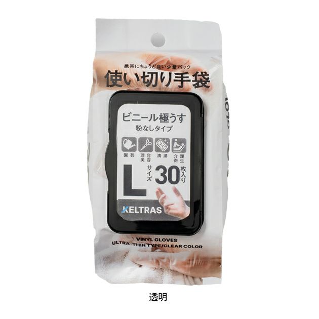 携帯にちょうど良い少量パック。粉なしタイプ使い切り手袋 カジメイク 9009 手袋 ビニール極うす手袋PF 30袋入り