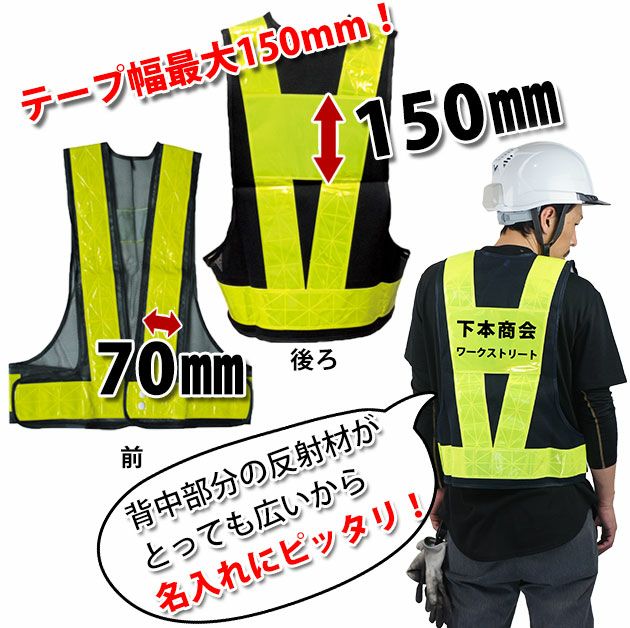 70mmの幅広タイプ!背中横は150mm幅でたくさん名入れできる! ユニワールド 安全ベスト 安全ベスト テープ幅広タイプ 7711 7712 7714