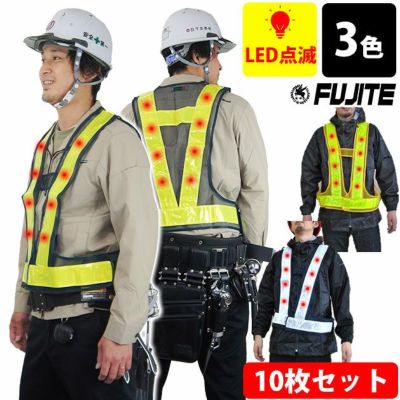 富士手袋工業 安全保安用品 LED発光&反射電飾安全ベスト反射6cm幅10枚セット / 2060 反射ベスト安全チョッキ