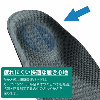 防災対策、安全靴・作業靴に! 鋭利なものから足裏を守る踏抜き防止板入りインソール! ◆ステンレスの踏抜き防止板入り 丈夫でしなやか、厚さ0.5mmのステンレスプレート内蔵。 ◆耐踏み抜き性能1,100N以上 およそ100kgの荷重にも耐えられます。 ◆サイズや形に合わせて調整可能 インソールに印刷されている線はサイズ調整のための目安です。 ご使用の靴のサイズ・形に合わせて調整してください。 ◆かかと部に衝撃吸収パッド搭載でクッション性抜群 ◆カップインソールだから足をしっかりホールドして疲れにくい! ◆抗菌防臭仕様 |