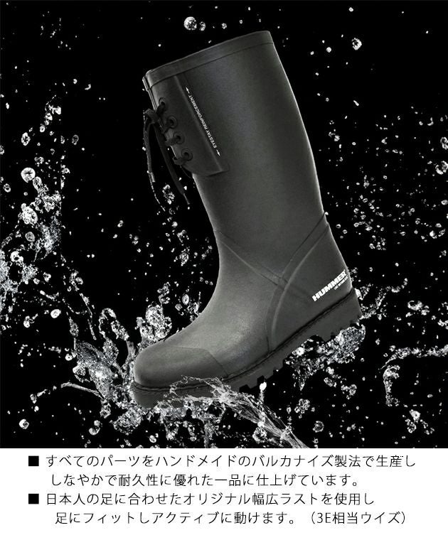 | 【特徴】 | アウトドアシーンや普段使いにもピッタリ! 大人気HUMMERからおしゃれ長靴登場! ◆耐久性とグリップ力に優れたオリジナルのゴム配合 ◆衝撃吸収材付きのインソールで長時間履いても疲れにくい ◆速乾性に優れた内側の素材でドライな履き心地が続く |