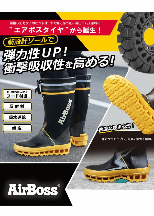 タイヤの技術を靴底に採用!弾力性と衝撃吸収がすごい! 福山ゴム 長靴 エアボス #020