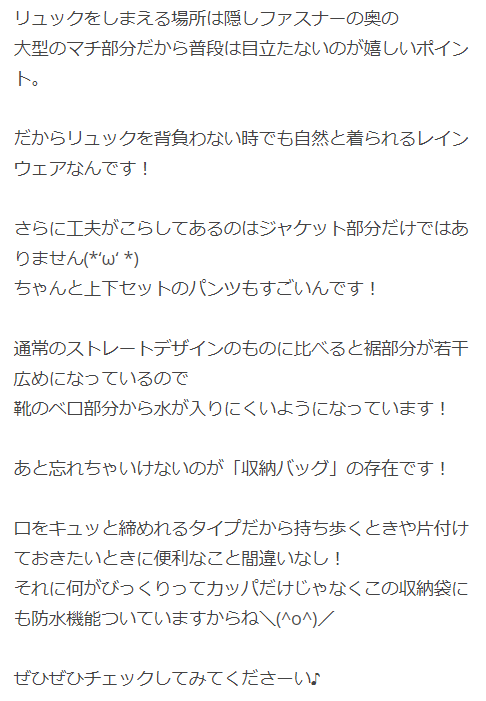 リュックを背負ったまま着れる!レインウェア登場!