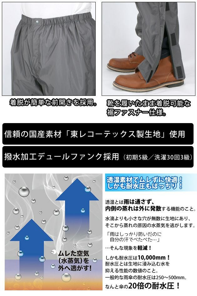 東レコーテックスの防水透湿素材ブリザック使用の高機能パンツ カジメイク レインコートレインウェア合羽 KJレインパンツEX 7730