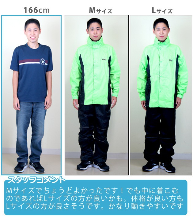 | 素材 | ナイロン100%(PUコーティング) ライナー/ポリエステル100%(ジャケット・パンツ総裏メッシュ) |
