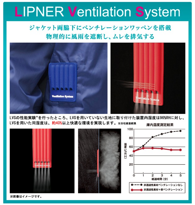 LVS+透湿素材のダブル透湿効果で蒸れを追放!