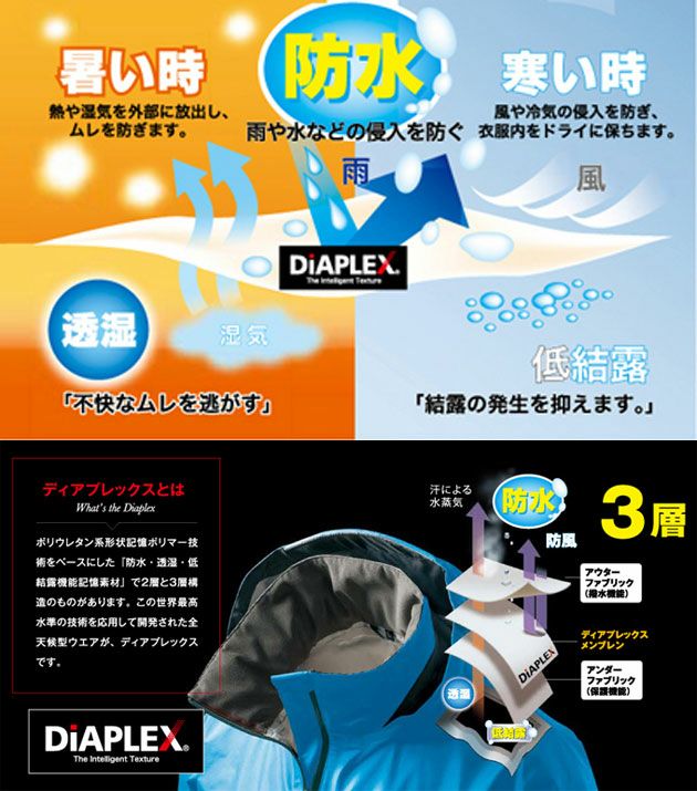 【特徴】 世界最高水準!防水・透湿・低結路機能記憶素材